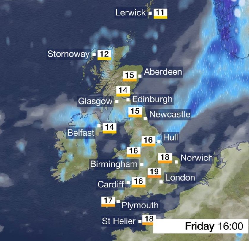 The colder conditions will engulf most of the uk by friday evening (image: bbc picture. The cloud will build through the afternoon and it will turn overcast, but it should remain dry.